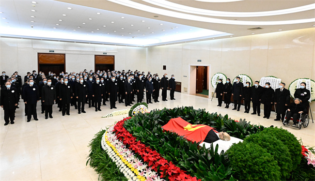 上午10时50分,灵车驶进八宝山革命公墓。在大礼堂,习近平等和江泽民同志亲属向江泽民同志作最后的诀别。